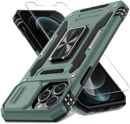 آیفون 12 پرو مکس با پوشش دوربین اسلاید + محافظ صفحه نمایش ((1 بسته) ، حلقه چرخش دار Kickstand Shockproof درجه نظامی